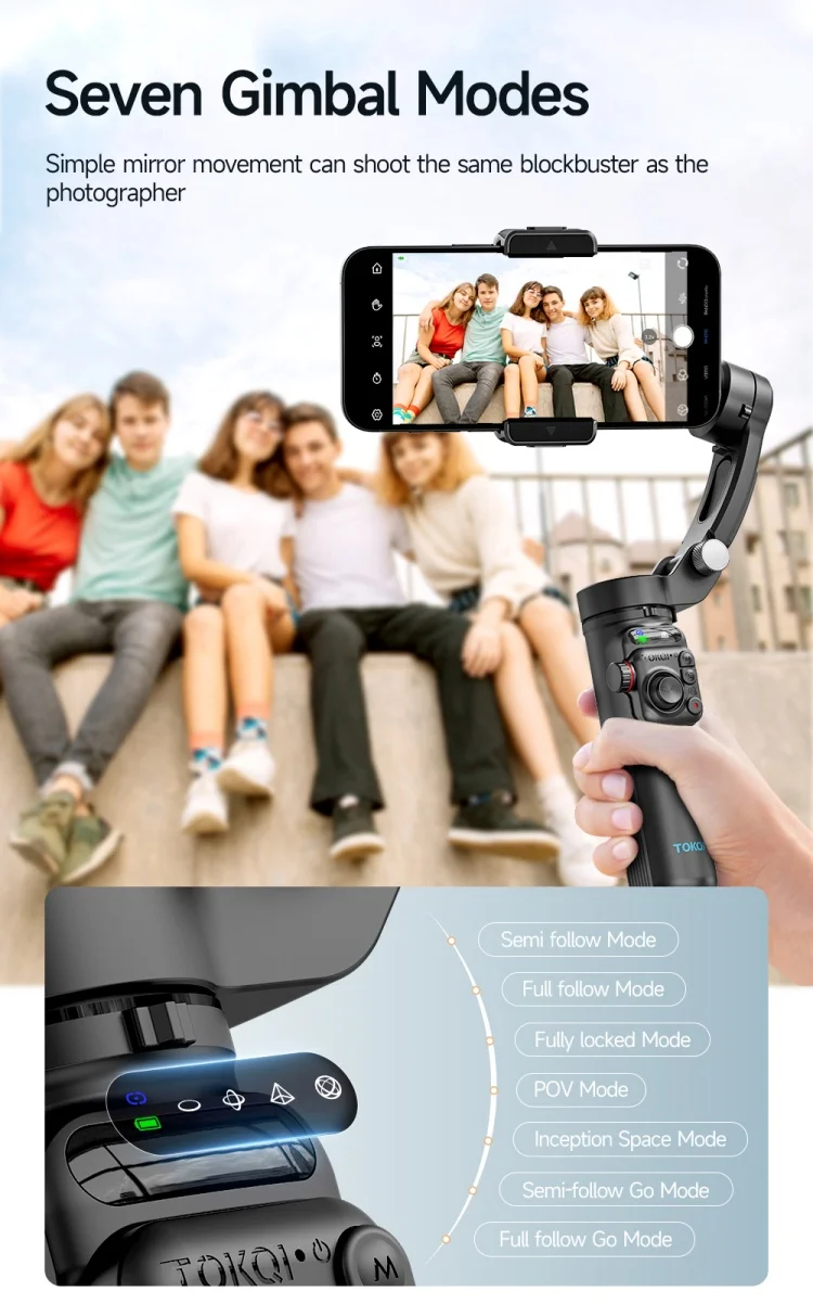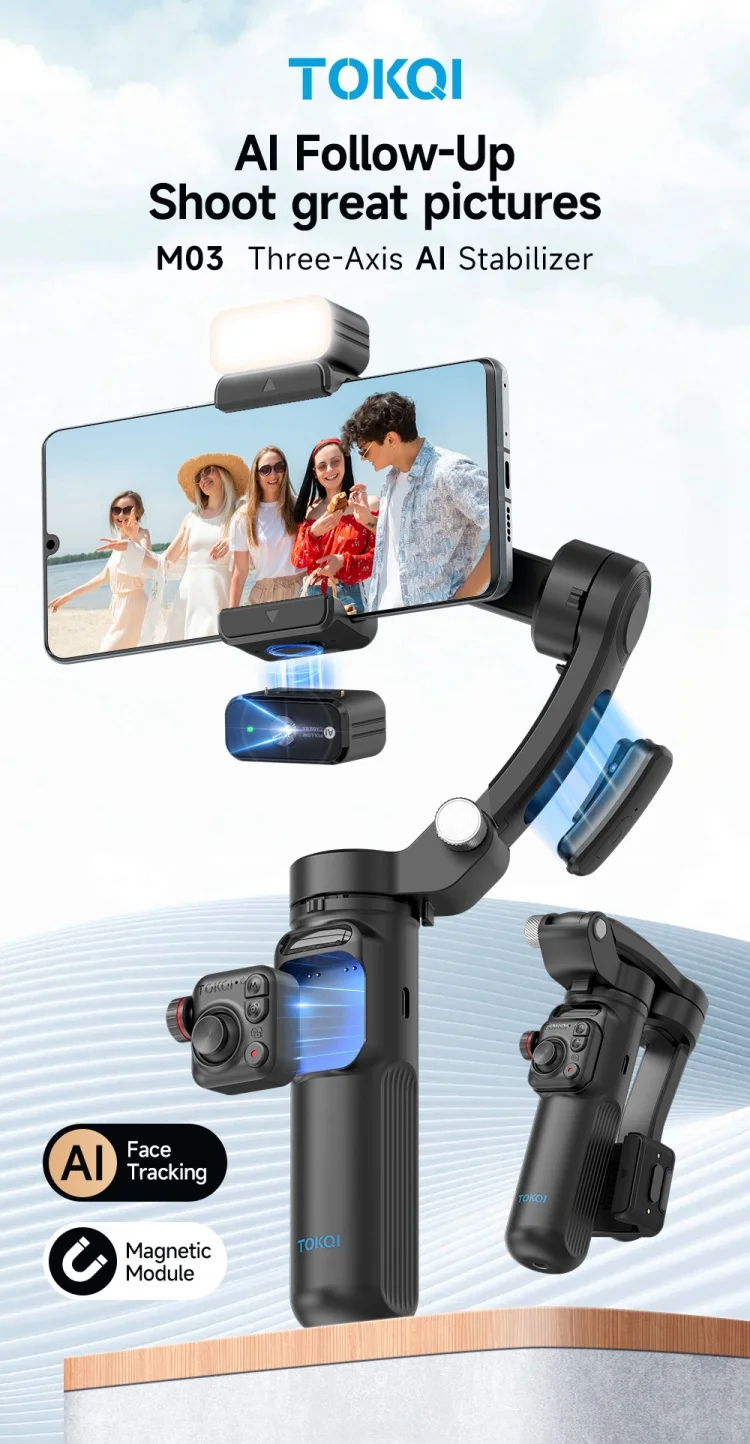 2025 Tokqi M03 Portable AI Tracker 360 Degree Phone Camera Gimbals Stabilizers with 3axis Handheld Stabilization Long Lifetime