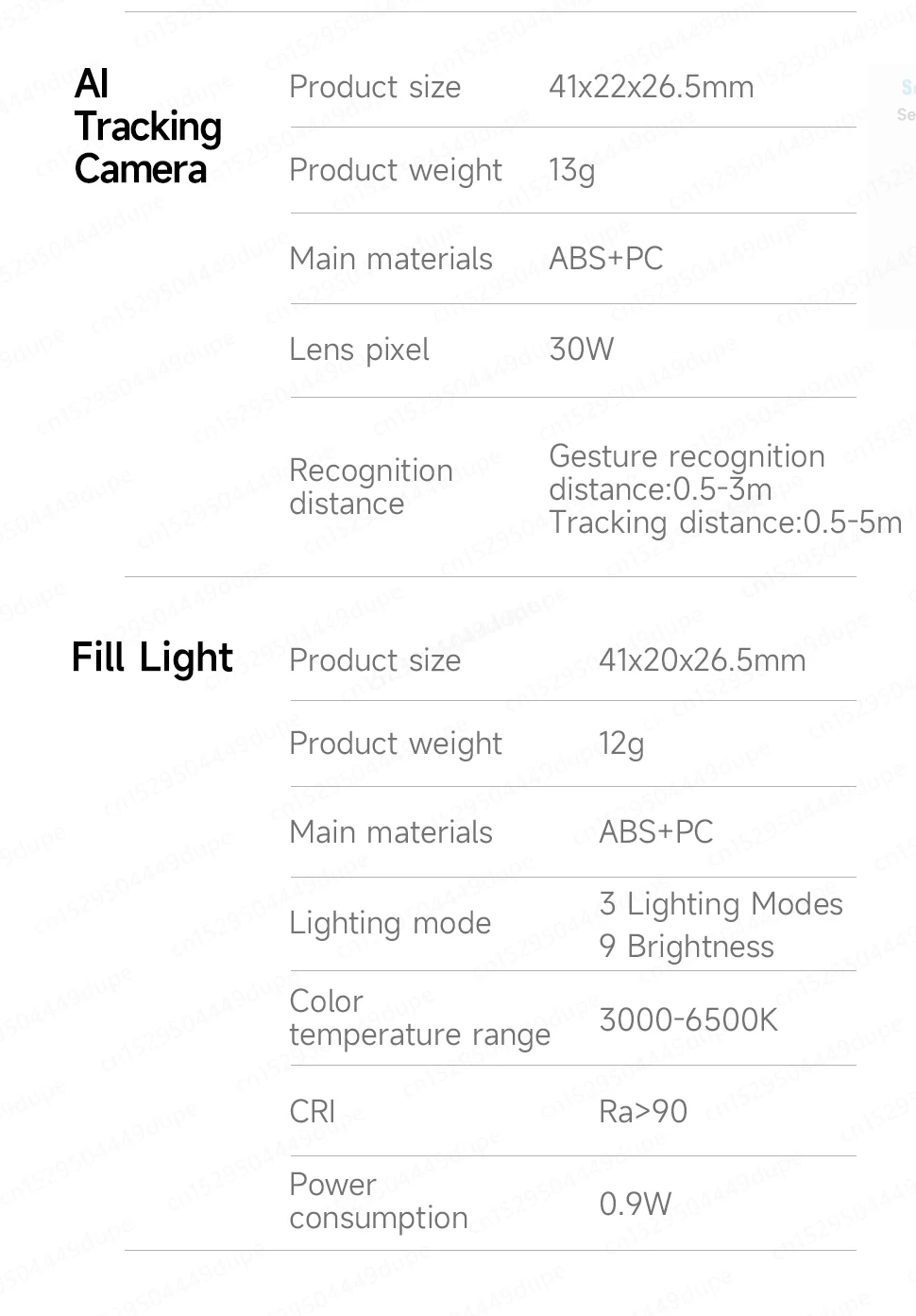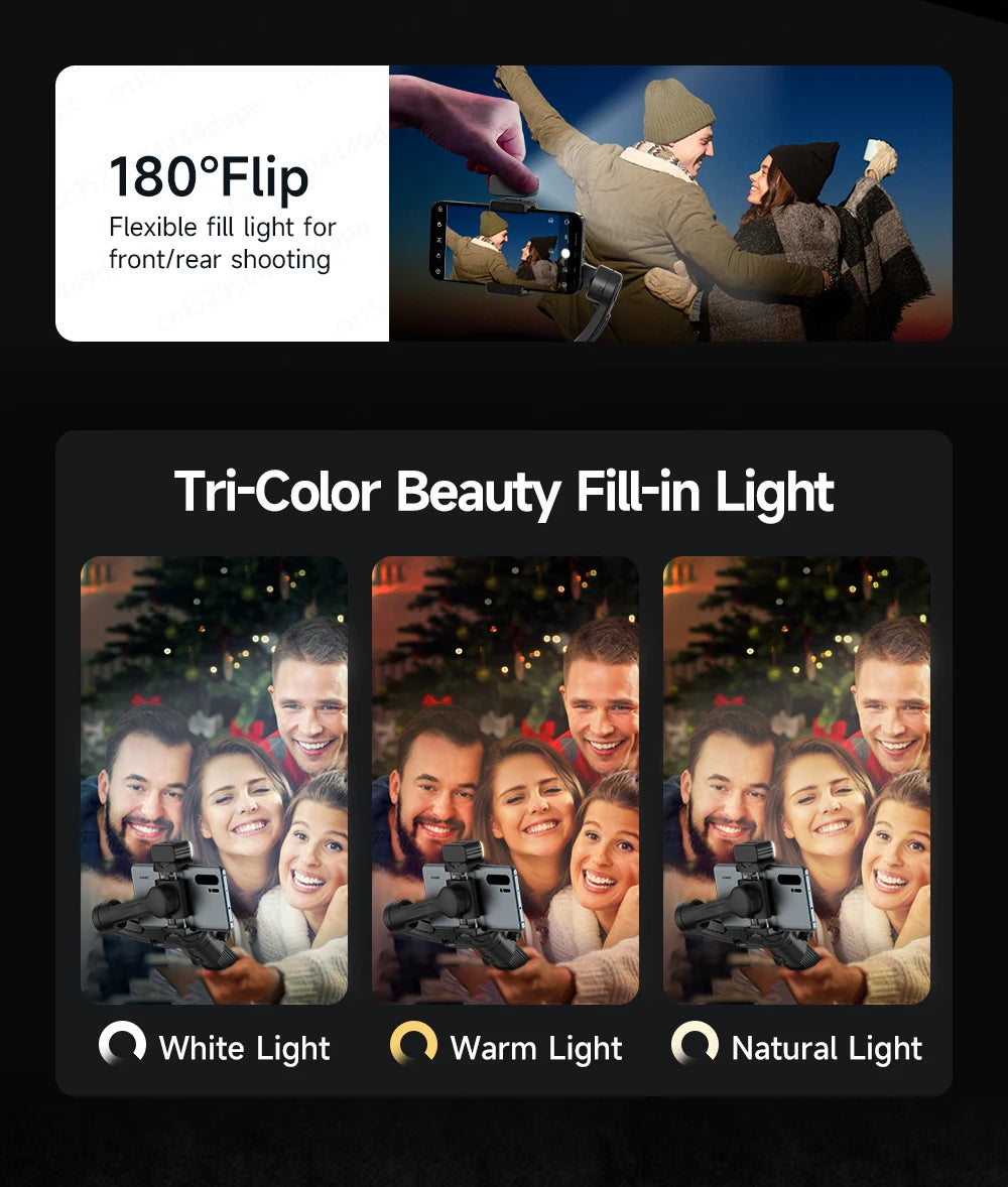 5. Equipped with magnetic fill light module, three colours and nine modes adjustment;